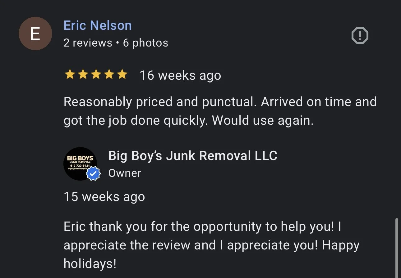 Minnesotans are known for being kind, hardworking, and dependable β the values behind Big Boys Junk Removal. We respect your home, time, and trust, working year-round to get the job done right.
